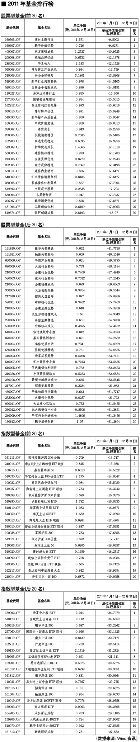 股票型基金排行榜[2012-01-06]