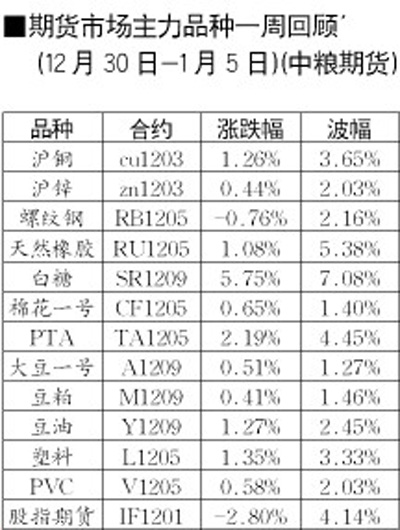 期貨市場(chǎng)主力品種一周回顧[2011.12.30-2012.01.05]
