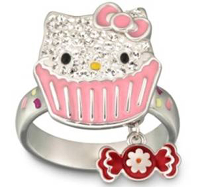 施華洛世奇(Swarovski)與Sanrio聯(lián)手合作打造了Hello Kitty春夏系列。與Sanrio緊密合作的施華洛世奇創(chuàng)作總監(jiān)娜塔妮·歌蓮表示,由于Hello Kitty總是抱著積極樂觀與多姿多彩的生活態(tài)度,而其活潑親切的形象和跨世紀(jì)魅力與施華洛世奇的核心精神不謀而合,因此,創(chuàng)作過程非常順利,這也是個充滿趣味的設(shè)計項目。圖為Hello Kitty CHIC戒指,這款鍍白金色戒指的整個表面,通過Pointiage 低溫陶瓷技術(shù)綴有不同色調(diào)的透明和粉紅色多重光效果迷你仿水晶,并飾有Hello Kitty臉孔和紅色環(huán)氧樹脂蝴蝶結(jié)。