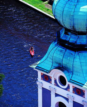 多根玻璃管組成的雕塑,藍色和綠色的玻璃發(fā)出夢幻般柔美的光線,像是一件玻璃樂器,奏響的是光的樂章!跋亩錉査{”已成為一個專有名詞,這種藍深邃,神秘,只可用眼睛去感受。夏朵爾是一個典型的法蘭西小鎮(zhèn)。