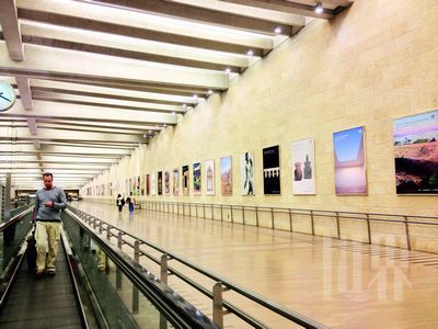 特拉維夫的本-古里安機場是一座非常美麗的機場,出發(fā)和到達都要經(jīng)過一條長長的通道,一邊是透明玻璃,一邊是石頭筑起的高墻,展出許多藝術家的作品,值得駐足欣賞。