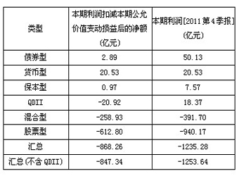 | 隨著部分基金公司2011年四季報數(shù)據(jù)的披露,其當期財務(wù)數(shù)據(jù)也部分浮出水面。從納入統(tǒng)計范圍的29家基金公司旗下367只基金情況看,偏股型基金成為拖累“創(chuàng)收”的最大因素,股票型基金和混合型基金合計虧損441.35億元。 | | | |