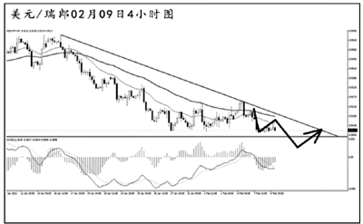美元兌瑞郎小幅創(chuàng)出新低,但整體仍未擺脫低位盤整的區(qū)間,下沿支撐在0.9110一線。短線匯價在對前方的下跌進(jìn)行調(diào)整,后市可繼續(xù)看空,但在跌破區(qū)間下沿之后,才可入場做空。建議關(guān)注下降壓力線的阻力0.9190一線,這是美元兌瑞郎短線上調(diào)的目標(biāo)區(qū)域。
