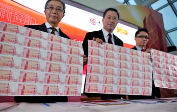 紀(jì)念鈔將于2月13日上午9點至2月20日下午5點在中國銀行位于香港的50家分行公開發(fā)售及接受認購申請。此外,中銀(香港)還將從3個版本中精選168套慈善珍藏版,以競投方式發(fā)售。122萬套紀(jì)念鈔的凈收益將全部捐贈于慈善機構(gòu)。