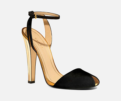 Gucci(古琦)2012春夏系列鞋履,跳脫設(shè)計的條條框框,從每一雙鞋的細(xì)節(jié)處自然流露出設(shè)計師對于時尚的敏銳感知。黑色與金色相結(jié)合,采用金屬的鞋跟,不僅彰顯質(zhì)感,而且華麗高雅,鏈條元素的加入,也顯得尤為優(yōu)雅、摩登和復(fù)古。魚嘴鞋款則使用了更具觸感的翻毛皮材質(zhì),依然是鏈條的點(diǎn)綴,卻將原本簡單的基本鞋款顯得個性十足。