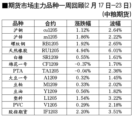 期貨市場主力品種一周回顧[2月17日-23日]
