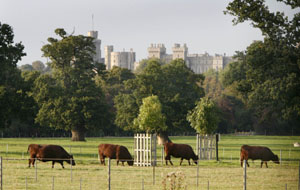 幾頭牛在英格蘭南部溫莎城堡附近吃草。新華社/路透 |