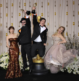 2月26日晚在洛杉磯好萊塢高地中心舉辦的第84屆奧斯卡獎(jiǎng)?lì)C獎(jiǎng)典禮上,前期在眾多評(píng)獎(jiǎng)活動(dòng)中所向披靡的法國(guó)黑白默片《藝術(shù)家》不負(fù)眾望,一舉摘得最佳影片、最佳男主角、最佳導(dǎo)演、最佳服裝設(shè)計(jì)和最佳電影配樂(lè)5項(xiàng)大獎(jiǎng),成為最大贏家。