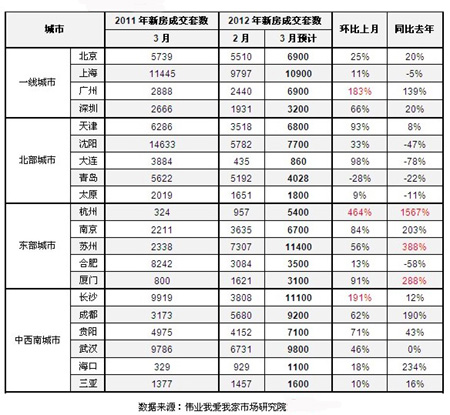 據(jù)偉業(yè)我愛(ài)我家市場(chǎng)研究院的數(shù)據(jù)統(tǒng)計(jì),3月份,新房成交量環(huán)比漲幅前三的城市分別是杭州上漲464%,長(zhǎng)沙上漲191%,廣州上漲183%;新房成交量同比漲幅前三的城市分別是杭州上漲1567%,蘇州上漲388%,廈門(mén)上漲288%。杭州的新房成交量漲幅不管是環(huán)比今年2月份,還是與去年同期相比,漲幅均領(lǐng)跑全國(guó)。