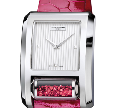 輕輕觸摸藍(lán)寶石滾軸設(shè)置,會(huì)形成燦爛奪目、錯(cuò)綜復(fù)雜的紅寶石漩渦,華麗的紅色鱷魚(yú)皮表帶勾起無(wú)限激情,表盤(pán)上迷人的細(xì)長(zhǎng)凹槽圖案裝飾,成就了這款終極精致動(dòng)人的腕表。