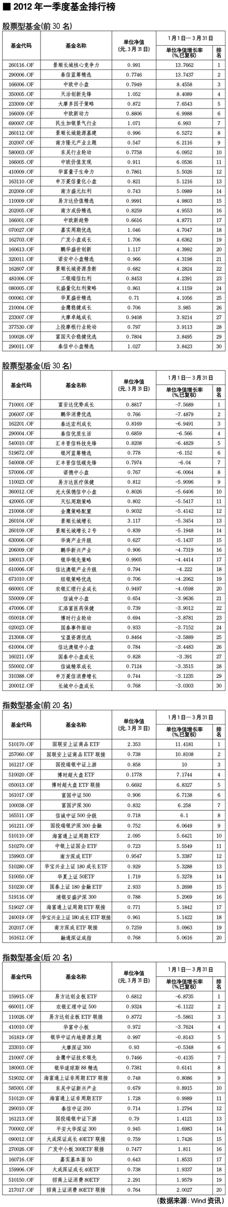 股票型基金排行榜[2012-04-06]