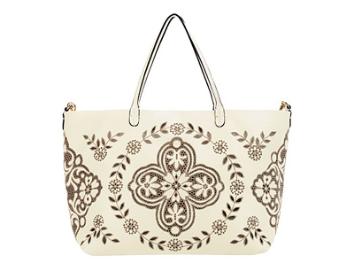 Valentino(華倫天奴)2012春夏系列手袋集合了華倫天奴紅以及高貴百搭的純白、裸色,整個(gè)系列的手袋以最簡(jiǎn)潔的款式加上能彰顯氣質(zhì)的鏤空花紋、蕾絲元素,以及大受歡迎的帥氣金屬鉚釘。