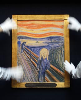 挪威畫(huà)家愛(ài)德華·蒙克的代表作《吶喊》近日亮相英國(guó)倫敦市中心的蘇富比拍賣行。它將于5月2日在紐約被拍賣。