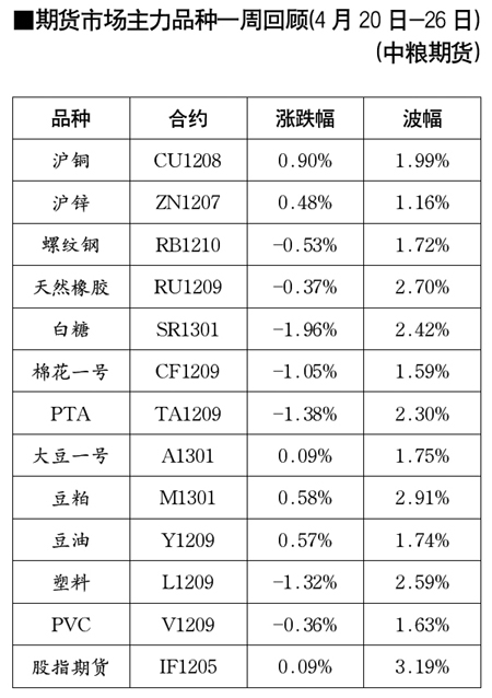 · 期貨市場主力品種一周回顧[4月13日-19日] 2012-04-20