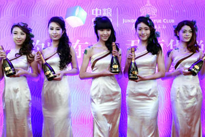 由中糧集團(tuán)打造的高端紅酒俱樂(lè)部——中糧君頂華悅(北京)俱樂(lè)部日前在京揭幕。該俱樂(lè)部以品鑒、推廣中糧酒莊及世界名莊葡萄美酒為主,已先后在濟(jì)南、上海、寧波、重慶等城市開(kāi)幕。圖為模特在中糧君頂華悅(北京)俱樂(lè)部?jī)?nèi)展示葡萄酒。