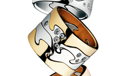 Fusion系列以指環(huán)開始。幾個(gè)精美別致的小金環(huán)巧妙靈動(dòng)相交相融,契合成獨(dú)特的設(shè)計(jì)。這前所未有、巧奪天工的設(shè)計(jì)融合出搭配的無(wú)盡可能,情定無(wú)限真愛。無(wú)瑕璀燦的美鉆和層層耀目的黃金幻化為情侶間的專屬印記,拼湊著情路上的點(diǎn)滴熾熱,協(xié)奏出醉人的浪漫故事,同時(shí)亦展現(xiàn)與眾不同的個(gè)人風(fēng)格。