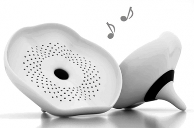這組名為 Lotus 的玩意,為出自于國外設(shè)計(jì)師 Lim Loren 點(diǎn)子;外觀彷彿一片飄浮在水面上的蓮花荷葉,甚至感覺旁邊會隨著音樂節(jié)奏泛起一陣陣水波紋,葉面表面上更可見到無數(shù)細(xì)小的發(fā)聲孔,而音量調(diào)整器則配于背面黑圈上,光是外觀就令人印象深刻。