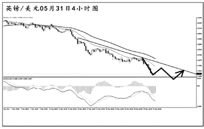 歐元兌美元跌破前方低點(diǎn)1.2625之后下行加速,斜率陡峭。下方近期無(wú)明顯的強(qiáng)支撐,短線下降趨勢(shì)線的斜率加大。歐元近期持續(xù)發(fā)生了角度明顯的MACD底背離信號(hào),但由于壓力線遲遲未能升破,效果一般。目前的單邊行情明顯,歐元調(diào)整過(guò)后將繼續(xù)下挫。