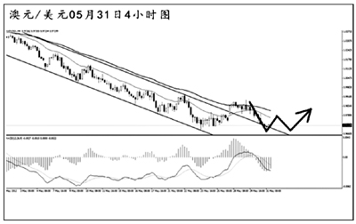 澳元兌美元升破4小時(shí)圖的通道上沿之后未能持續(xù)上行,短線匯價(jià)回抽通道,且再度創(chuàng)出短線新低。從日線圖上看,目前澳元正在挑戰(zhàn)0.9660一線的道氏點(diǎn)支撐,能否撐住成為后市澳元發(fā)起反彈的關(guān)鍵。目前這種節(jié)奏并不建議主觀預(yù)測(cè)澳元的動(dòng)向,待下一步局勢(shì)略微明朗后再行抉擇。