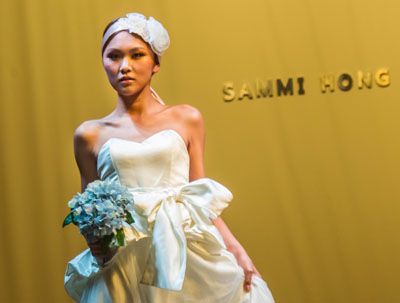 “Sammi Hong2013春夏婚紗系列”發(fā)布會(huì)日前在上海東華大學(xué)舉行,展示了由東華大學(xué)在校學(xué)生設(shè)計(jì)制作的60件婚紗禮服,作品風(fēng)格溫婉而細(xì)膩,顯示了學(xué)生們的才華與創(chuàng)意。圖為模特在展示婚紗禮服作品。