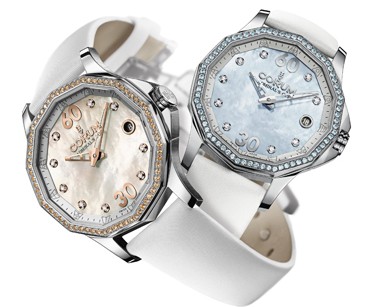 Fiancée腕表正正是Corum努力不懈的成果。腕表表面采用來自巴西及泰國的珍珠貝母制成,小時刻度鑲嵌著9顆約共0.10ct的鉆石,6時及12時位置則設30及60分鐘數(shù)字。