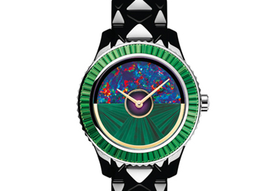 VIII系列推出五款獨一無二的黃金和黑色或白色陶瓷鑲嵌瑰麗彩色寶石的腕表,于方寸之間盡顯迪奧高訂禮服中的繽紛色彩,展現(xiàn)了真正的無與倫比的專業(yè)技術(shù)。