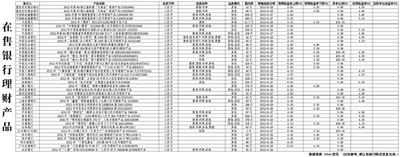 在售銀行理財(cái)產(chǎn)品[2012-06-29]