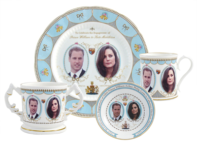 這是英國(guó)骨瓷生產(chǎn)公司Aynsley China為迎接威廉王子與凱特王妃大婚而制作的骨瓷餐具的照片。