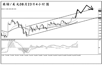 歐元兌美元將此前的窄幅盤整區(qū)間上沿1.2385強力升破,短線匯價繼續(xù)沿著4小時圖的上升通道穩(wěn)步上行。日線圖上看,歐元已經(jīng)將均線系統(tǒng)的壓制位升破,上方的下一道強阻在道氏高點1.2750,預計匯價將繼續(xù)向此位置發(fā)起沖擊。短線歐元面臨一定的下調(diào),但整體的上行態(tài)勢不變。
