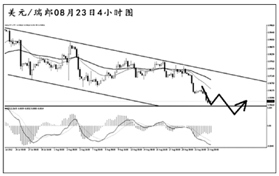 美元兌瑞郎此前未能突破下降通道,短線重新爆發(fā)出下跌動能,將小震蕩區(qū)間下沿0.9695跌破。日線圖的均線系統(tǒng)已被跌破,中線的漲勢遭遇一定的挑戰(zhàn)。下方強支撐在道氏低點0.9420,預計匯價將向此位置逐漸發(fā)起挑戰(zhàn)。短線匯價有一定的上調(diào)壓力,但隨后繼續(xù)下行的概率較大。