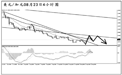 美元兌加元中線的跌勢遭遇一定的挑戰(zhàn),短線匯價發(fā)力上行,但并未能回到此前被跌破的下降通道內(nèi)部。美元兌加元的強動能交替節(jié)奏較為頻繁,雖然匯價將道氏高點阻力0.9900一線刺破,但并未能持續(xù)上行,后市仍有繼續(xù)下行的風險。目前需以謹慎看空為主思路。