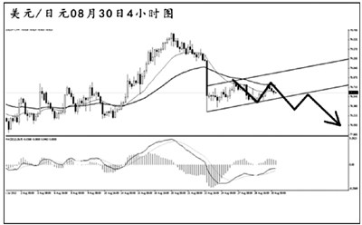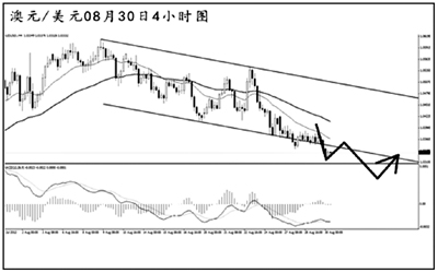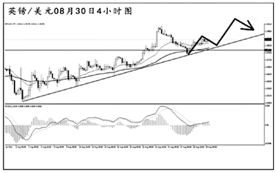 澳元兌美元強(qiáng)力跌破了日線圖的上升趨勢(shì)線之后,又刺破了4小時(shí)圖的震蕩通道下沿,短線的下跌勢(shì)頭迅猛。目前匯價(jià)正在考驗(yàn)日線圖均線系統(tǒng)的依托位,由于下方近期無(wú)明顯強(qiáng)支撐,澳元的下跌空間廣闊。短線匯價(jià)在對(duì)通道下沿發(fā)起回抽,只要澳元不強(qiáng)力回到通道內(nèi)部,后市仍將以下行回落為主。