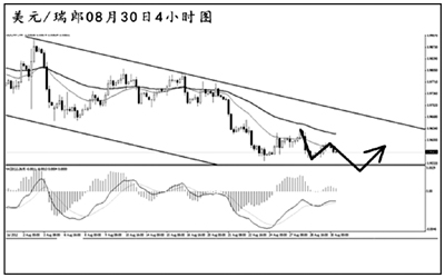 美元兌瑞郎在下降通道中部震蕩盤(pán)整,對(duì)前方的下跌進(jìn)行修正。日線圖匯價(jià)已經(jīng)跌破了均線系統(tǒng)的依托,下方即將挑戰(zhàn)道氏低點(diǎn)支撐0.9425,跌破方可打開(kāi)進(jìn)一步的下跌空間。日線MACD仍然處于空頭動(dòng)能充盈的階段,預(yù)計(jì)后市調(diào)整過(guò)后仍將以下行為主。