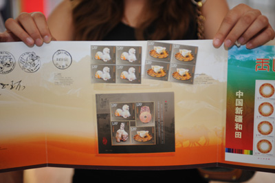 當(dāng)日,在第九屆和田玉石文化旅游節(jié)開幕之際,中國郵政集團(tuán)公司在“玉都”新疆和田正式發(fā)行我國首套《和田玉》特種郵票,一批我國古代和田玉精品得以盡顯方寸之間。據(jù)中國郵政集團(tuán)公司郵票發(fā)行部介紹,首套《和田玉》特種郵票1套4枚、小全張1枚,題材選取我國四件古代和田玉玉器珍品。