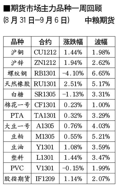 期貨市場(chǎng)主力品種一周回顧[8月31日-9月6日]
