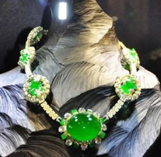帶來數(shù)款價(jià)值超過億元的昂貴珠寶作品。其中采用頂級(jí)帝王翡翠主石(37.45*30.43毫米)制作的《長(zhǎng)城》價(jià)值5億6千萬(wàn)港元;另一件《悟禪知翠》同樣采用頂級(jí)帝王翡翠,蟬抱碧潤(rùn)翡翠主石,背面巧鑲紫玉,估價(jià)3億港元。