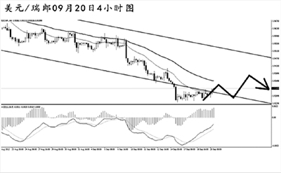 美元兌瑞郎跌破日線圖道氏低點(diǎn)支撐0.9420之后下行幅度有限,本周持續(xù)在對(duì)此前的下跌進(jìn)行調(diào)整。雖然短線匯價(jià)的主趨勢(shì)仍然向下,但由于此波震蕩時(shí)間實(shí)在過(guò)久,美元兌瑞郎面臨一定的上行壓力。4小時(shí)圖均線系統(tǒng)的壓制位在0.9355,而道氏高點(diǎn)的阻力在0.9420,順利突破這兩道阻力是美元兌瑞郎繼續(xù)上調(diào)的關(guān)鍵。