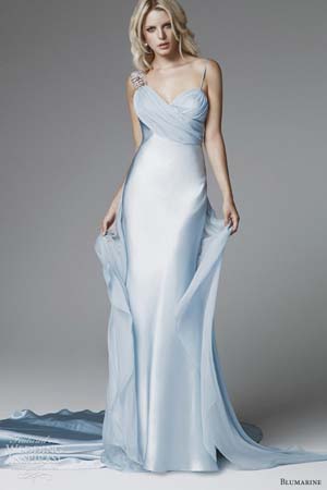 Blumarine(藍色情人)發(fā)布最新2013年度新款婚紗系列,本季 Blumarine 主打淺水藍色系婚紗,延續(xù)品牌喜愛的高腰蝴蝶結設計風格,加入更多蕾絲設計,清新靚麗。