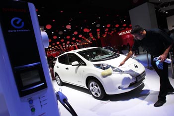 巴黎國際車展上展出的尼桑電動(dòng)車。 |