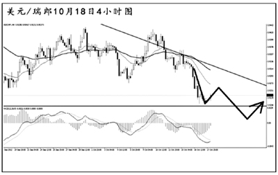 美元兌瑞郎受制于大級(jí)別下降趨勢線的阻力,短線強(qiáng)力下跌,且已經(jīng)跌破了前方低點(diǎn)0.9235的支撐。若站穩(wěn)在此位置下方,后市匯價(jià)的下行空間廣闊,主趨勢將延續(xù)。小時(shí)圖上,匯價(jià)距離均線系統(tǒng)的壓制位較遠(yuǎn),預(yù)計(jì)即使發(fā)生一波上沖,也不會(huì)影響整體的下跌勢頭。