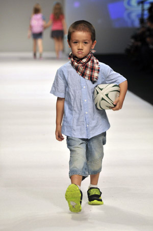 在“2013上海時(shí)裝周”的童裝發(fā)布會(huì)中,小模特憨態(tài)可掬的表演引發(fā)觀眾陣陣掌聲和歡呼,成為時(shí)裝周中的一個(gè)亮點(diǎn)。新華社發(fā)