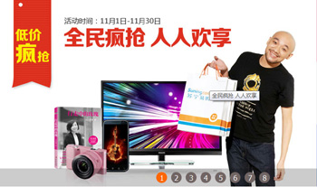 蘇寧易購主打的是“三天三夜超級零元購計劃”,線上線下結(jié)合,用空前的促銷力度向各大電商宣戰(zhàn)。蘇寧易購執(zhí)行副總裁李斌稱,蘇寧在“雙十一”物流投入將達(dá)5000萬元,10月底已與國內(nèi)外上百個品牌簽訂采購協(xié)議,完成全部貨源的儲備,數(shù)萬款市場主流暢銷商品全部參與到“雙十一”促銷當(dāng)中,總體讓利規(guī)模超過15億元。蘇寧“雙十一”的銷售目標(biāo)是50億元。