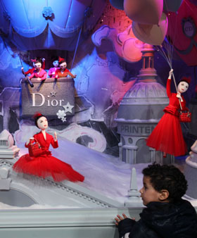 9日傍晚,天空飄著小雨,空氣中略帶初冬的寒意,但是巴黎著名的商業(yè)街區(qū)——奧斯曼大街上霓虹閃耀,行人如織,絲毫沒有受到壞天氣的影響。坐落在這里的巴黎春天百貨商店門前更是人頭攢動。當(dāng)春天百貨與法國著名奢侈品品牌迪奧精心設(shè)計(jì)、準(zhǔn)備的圣誕櫥窗在法國著名影星瑪麗昂·歌迪亞的主持下拉開帷幕時(shí),五顏六色的彩燈、會唱會跳的布偶立刻吸引了眾多市民及游客駐足欣賞。