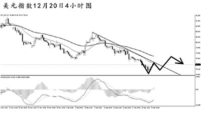 美元指數(shù)將日線圖前方低點79.55跌破之后發(fā)力下行,短線價格受制于下降趨勢線的阻力,下落的主趨勢保持完好。從空間上看,美元指數(shù)仍具備繼續(xù)走弱的條件。但短線價格發(fā)起了一定力度的上沖,若美元指數(shù)升破79.50,預(yù)計將展開一波較為明顯的上調(diào)。目前繼續(xù)做多非美貨幣需要謹(jǐn)慎。
