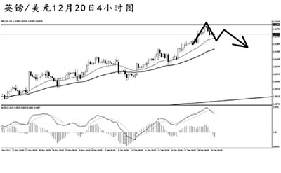 英鎊兌美元經(jīng)過日線圖連續(xù)3天實體收陽,順利地到達(dá)了大級別1.6300一線的阻力,但很可惜匯價并未能創(chuàng)出新高,同時也未能將中線震蕩區(qū)間的上沿刺破。短線英鎊的下調(diào)力度強(qiáng)勁,雖然匯價距離4小時圖均線系統(tǒng)的依托尚有一段距離,但預(yù)計英鎊仍有一定的下調(diào)動力,后市以謹(jǐn)慎看下調(diào)為主思路。