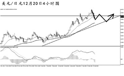 美元兌日元向日線圖前方高點阻力84.15發(fā)起沖擊后回落,此后再度創(chuàng)出新高,顯示出日元目前的疲弱。但此次新高未能打開過多的上漲空間。本周四上午,日本央行如期宣布擴(kuò)大資產(chǎn)購置規(guī)模,日元走勢震蕩,短線匯價再度回落,預(yù)示著匯價沖擊85.50的阻力還需要一定的時間。