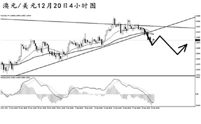澳元兌美元持續(xù)在對大級別收斂形態(tài)的上沿進(jìn)行沖擊,但始終未能有效升破。最近一段時間,商品貨幣的走勢明顯要弱于歐系貨幣,澳元短線小幅下調(diào),已經(jīng)將最近的一條上升趨勢線跌破。4小時圖MACD顯示空頭動能充盈,預(yù)計后市澳元仍有進(jìn)一步下行的需求,可繼續(xù)以謹(jǐn)慎看空澳元為主。