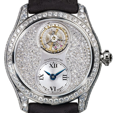格拉蘇蒂深知女性對(duì)于鉆石所擁有的、幾乎是出于本能的迷戀。當(dāng)一支擁有復(fù)雜陀飛輪的格拉蘇蒂腕表表盤綴滿繁星般的碎鉆,有幾人能夠掩住驚艷的嘆息?技藝與奢華并存,即是格拉蘇蒂女款小夜曲陀飛輪腕表。