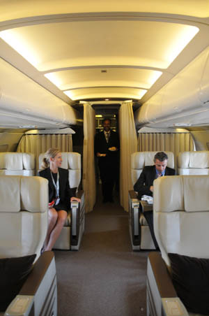 “作為企業(yè)家,商務行程繁忙,擁有自己的公務機作為交通工具可以按照自己的意愿安排行程,非常方便。其實在國內(nèi)的公務出行我基本上不會使用公務機,只有在出國且日程緊張的情況下才會坐自己的公務機!敝袊茽柦】导瘓F董事局主席翟家華已擁有兩架龐巴迪公務機。他告訴《經(jīng)濟參考報》記者,目前,“善爾”號公務機一年約有400-500飛行小時,而飛行小時數(shù)超過300就說明使用公務機達到比較高效務實的階段。“我坐公務機的時間只占飛行小時數(shù)的1/3到1/4。有一次,我周五坐公務機到韓國濟州島辦事,白天結(jié)束工作,晚上就可以坐公務機飛到菲律賓,然后找酒店休息,周六接著工作,在菲律賓忙完周日我就可以坐公務機回國了,因為周日北京還有重要客戶要會談。但如果坐正常的航班可能要多耗上一兩天!钡约胰A講述了一次他極為緊張的商務行程安排。
