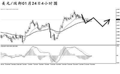 美元兌瑞郎的反彈遭遇挑戰(zhàn),短線匯價小幅回落,但整體的跌勢并不強勁。由于匯價已經(jīng)升破了日線圖均線系統(tǒng)的壓制,后市仍有進一步上沖的動力。小時圖上美元兌瑞郎的主趨勢雖然向下,但由于跌幅有限,且均線系統(tǒng)被反復穿越,只要后市重新爆發(fā)出多頭動能,即可對其恢復看漲。